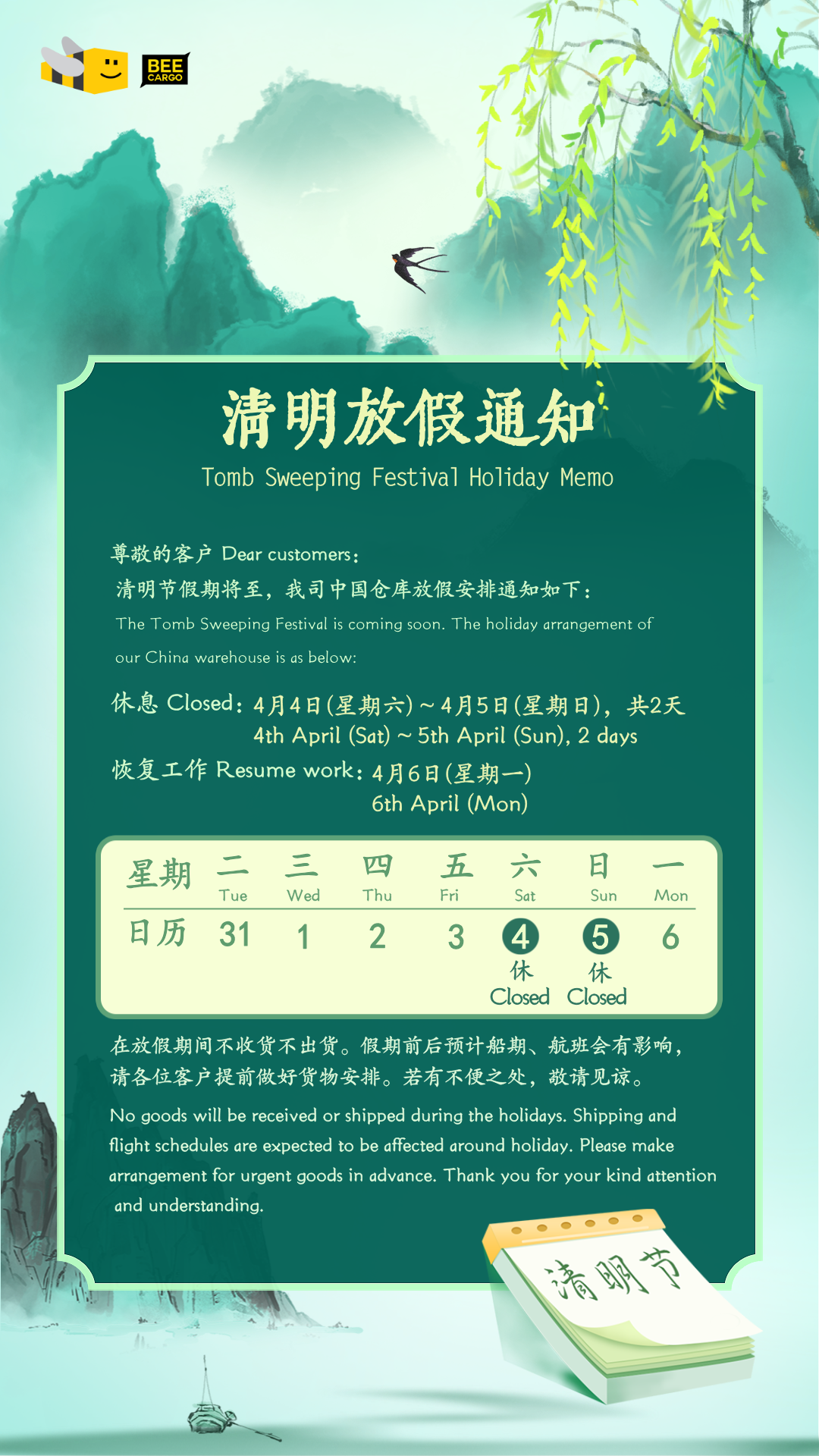 2026清明节仓库放假通知